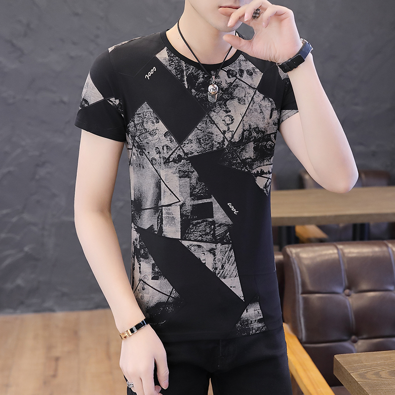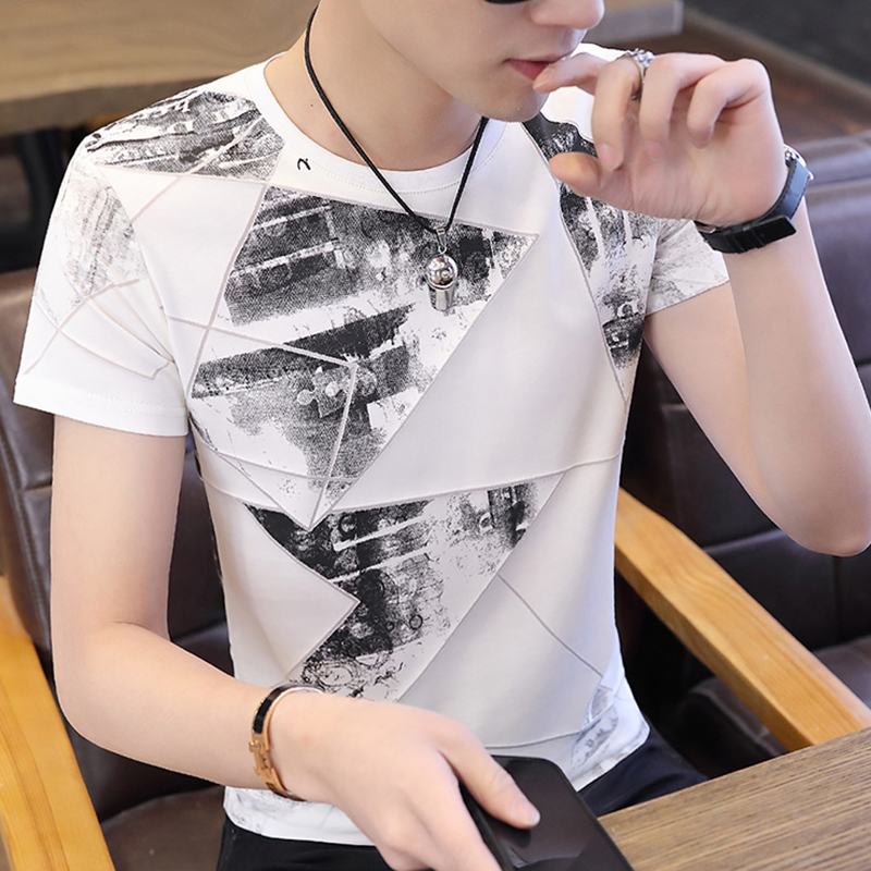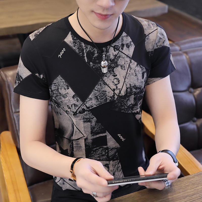Flowers Short Sleeves Men 2022 Summer New men's T-shirts Korean version Trend Body Round leader Tide Card Printed Half Sleeve T-shirt
