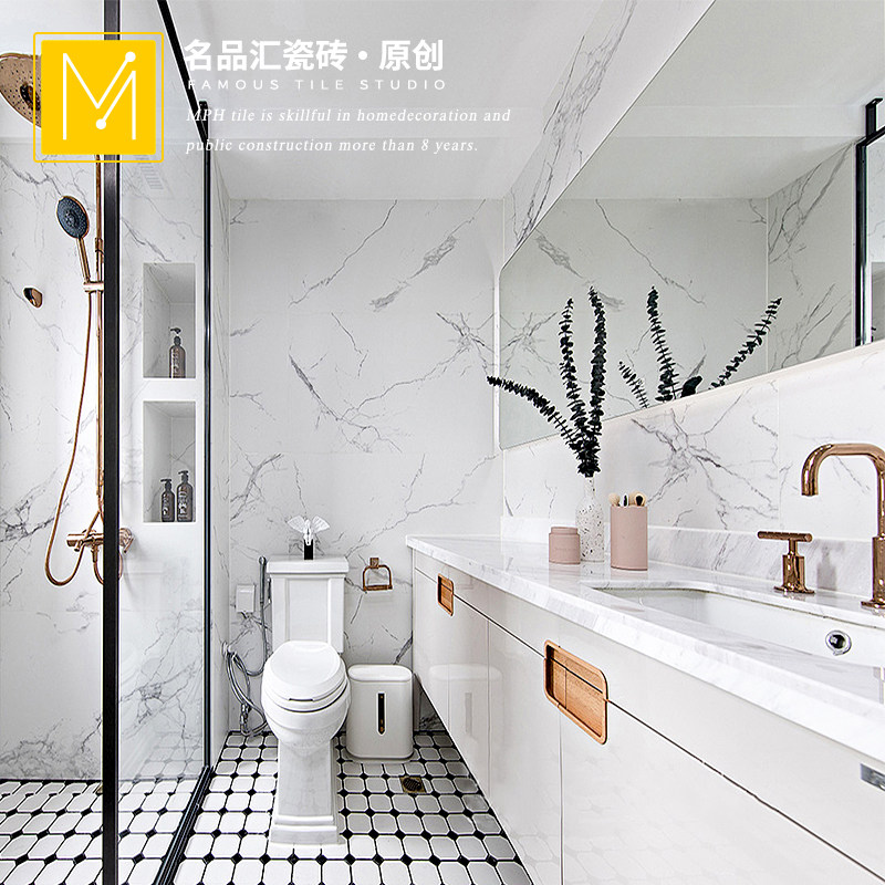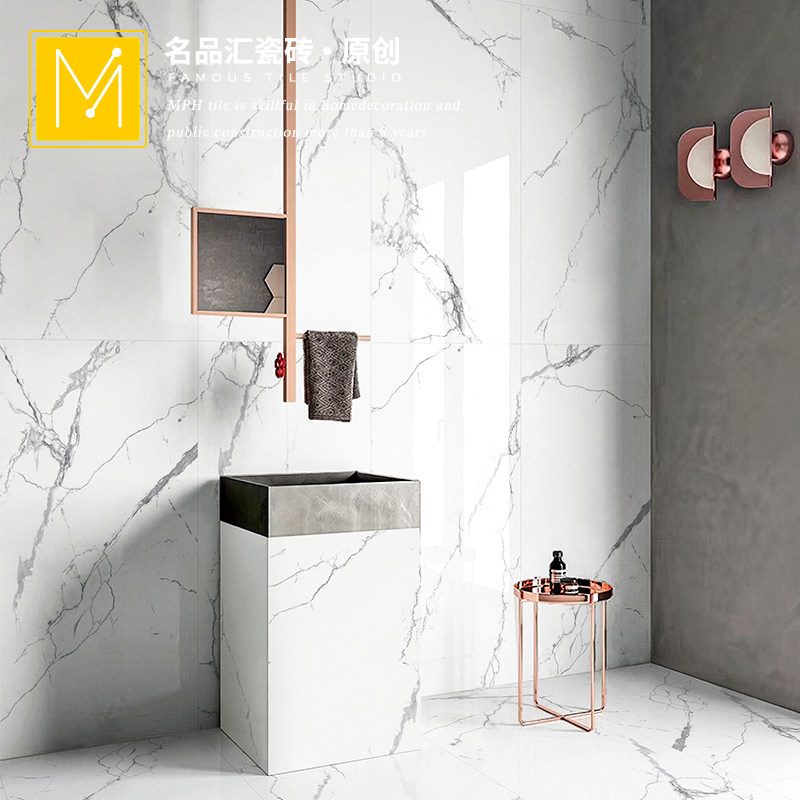 Light luxury powder room soft light jazz white marble tile 600x1200 fish maw white toilet kitchen bathroom wall tiles