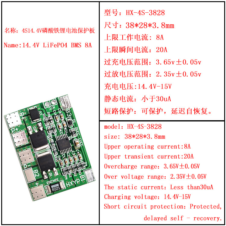 4 strings of 12 8V32650 lithium iron phosphate battery protection board to prevent overcharge and overdischarge working current 8A20A current limit