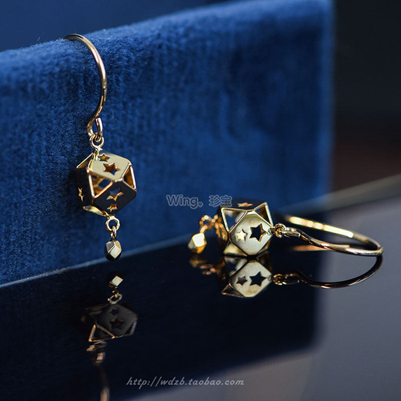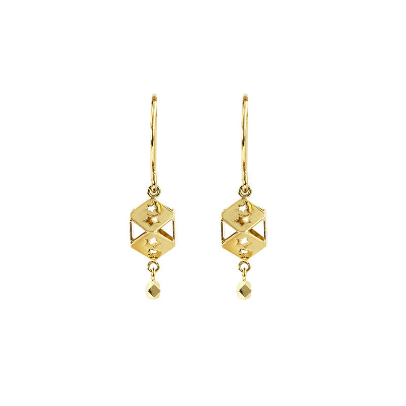 Wing | Star light Japanese made 18k gold star Hollowed-out Earrings Ear Hook Earrings Earrings Pick Up Jia