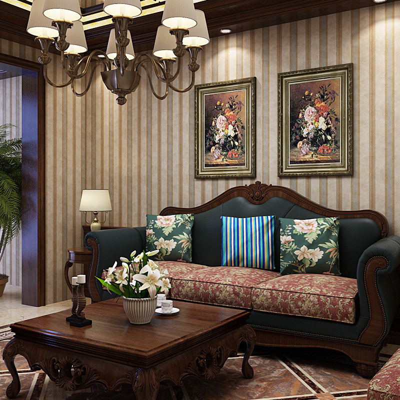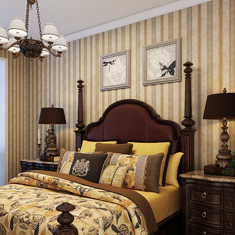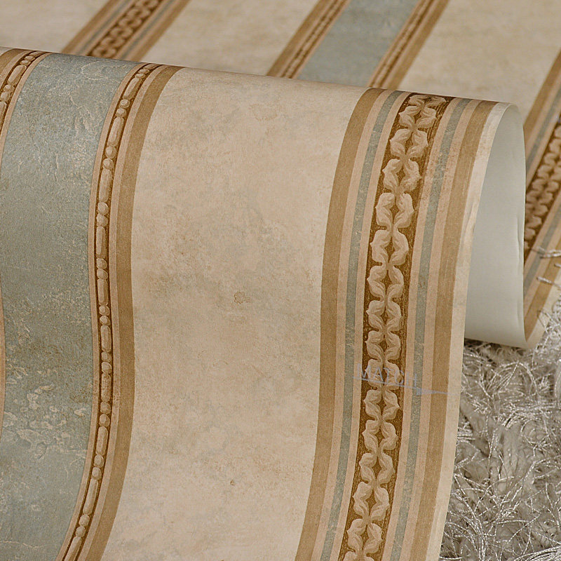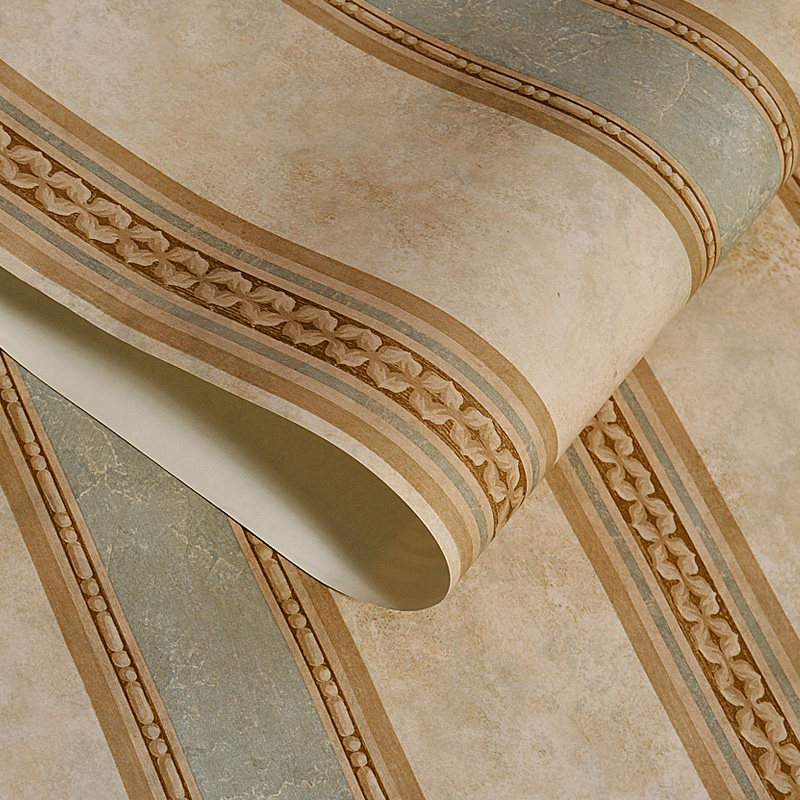 Retro American vertical stripes non-woven pure paper paper base wallpaper luxury country vertical stripes pastoral bedroom living room background