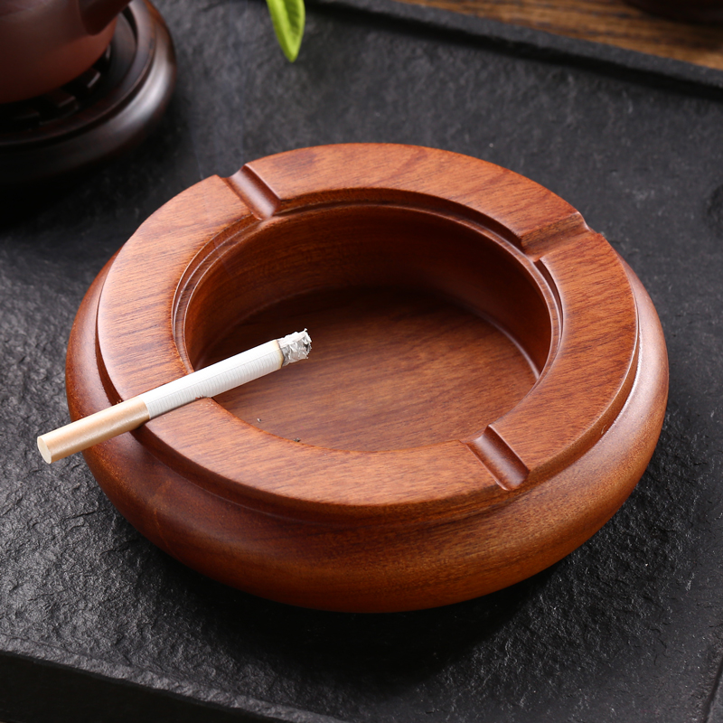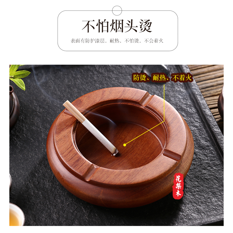 Chinese ashtray with lid large creative personality trend home living room mahogany anti-fly ash pear solid wood - Taobao