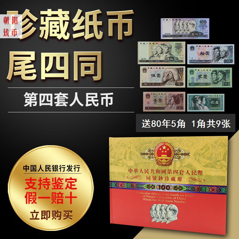 The fourth set of RMB Full set of real coins Four banknotes with the same number collection of banknotes RMB collection of bank insurance gifts