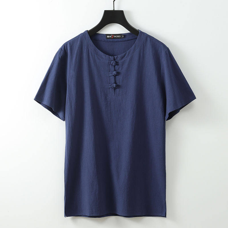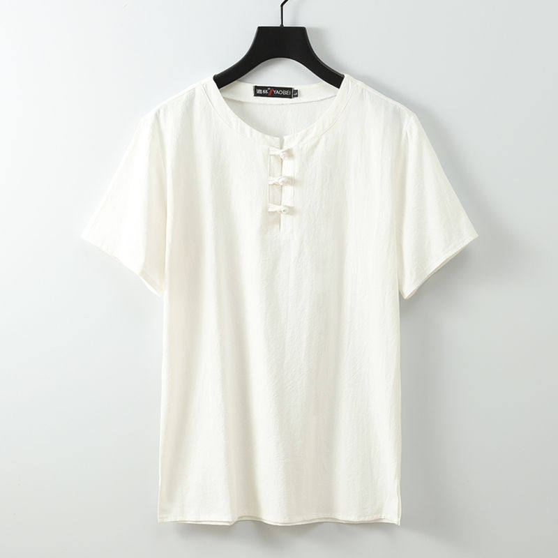 Retro Imitation Flax Male China Wind Men's Clothing Plus Fertilizer Increase Code Short Sleeve Fat Sub Loose Cotton Numb Summer Clothing T-shirt