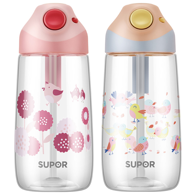 Supor children's water cup with straw cup female Korean version plastic portable summer adult primary school students kindergarten kettle