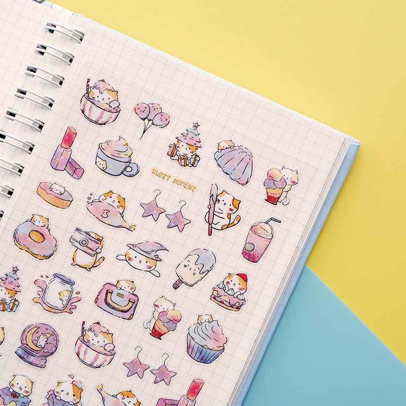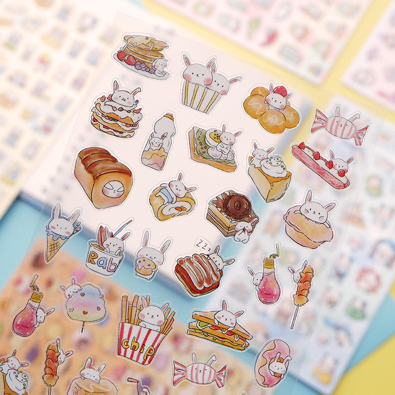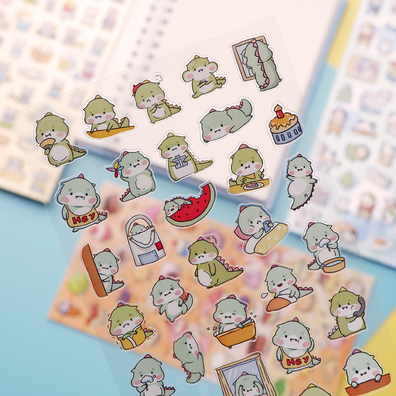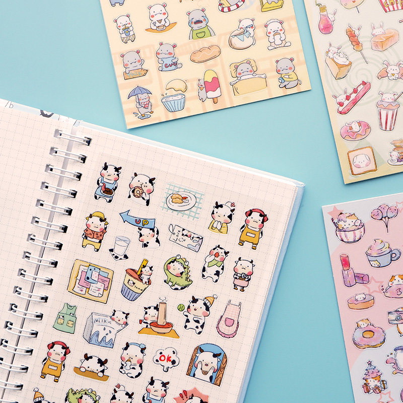 Cute Animal Stickers Dinosaur River Horse Dairy Cow Rabbit Cat Cake Gourmet Ice Cream Hand Ledger Waterproof Tips