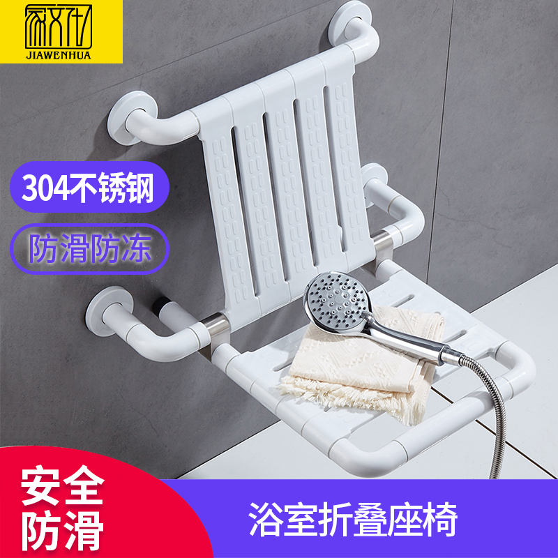 Bathroom Folding Stool Shower Seat Wall-mounted with backrest Makeup Room Elderly Pregnant Woman Toilet Non-slip Bath Chair