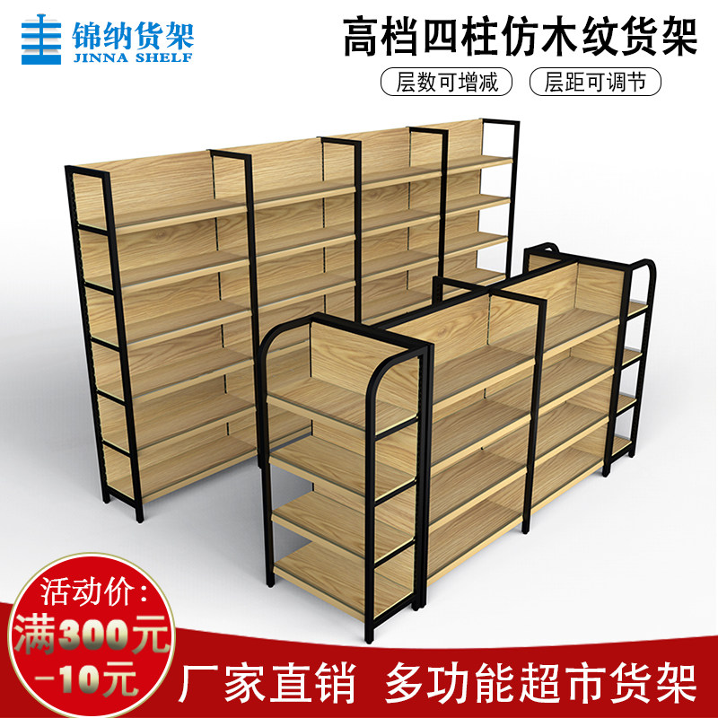 Jinna adhesive hook hanging basket clothing rack cold rolled steel transfer wood grain color supermarket multi-function display rack storage rack