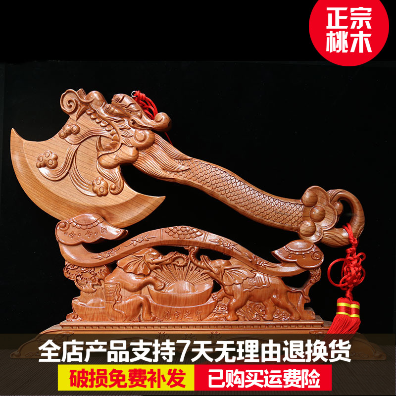 Authentic Feicheng town house evil pure peach wood axe Living room decoration Wedding sitting blessing housewarming moving wood carving pendant