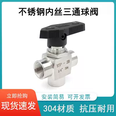 Stainless steel three-way ball valve high pressure 304 internal thread L-type ball valve panel imitation US three-way ball valve inner wire 2 points