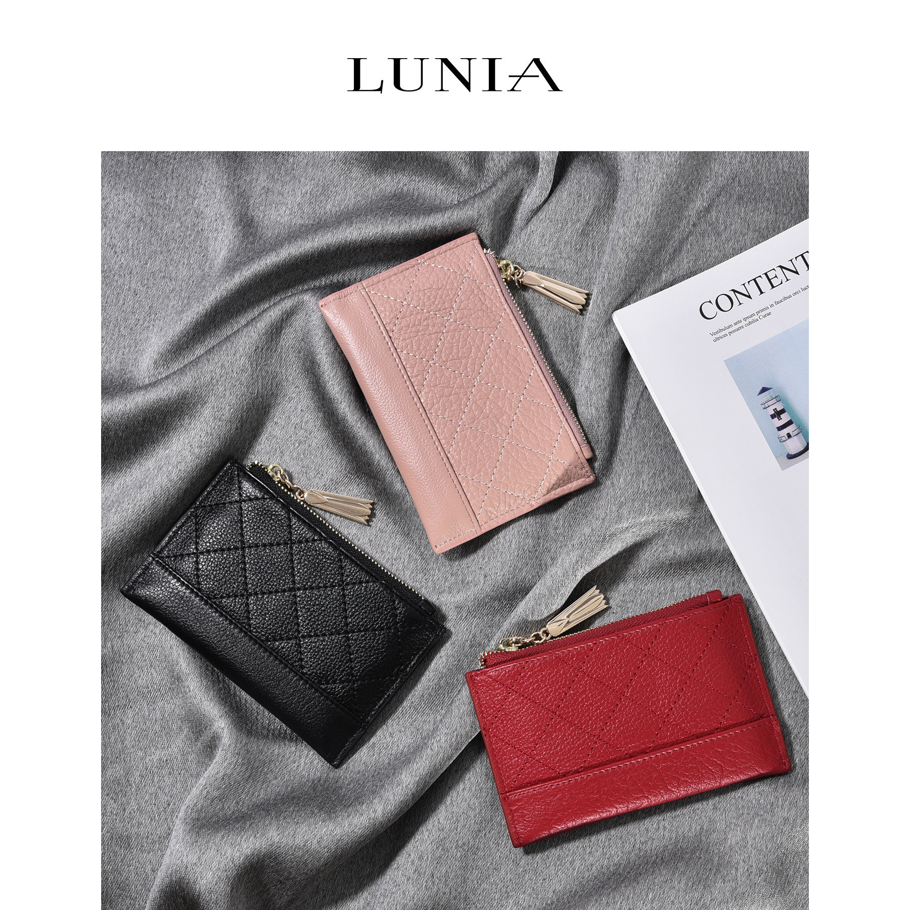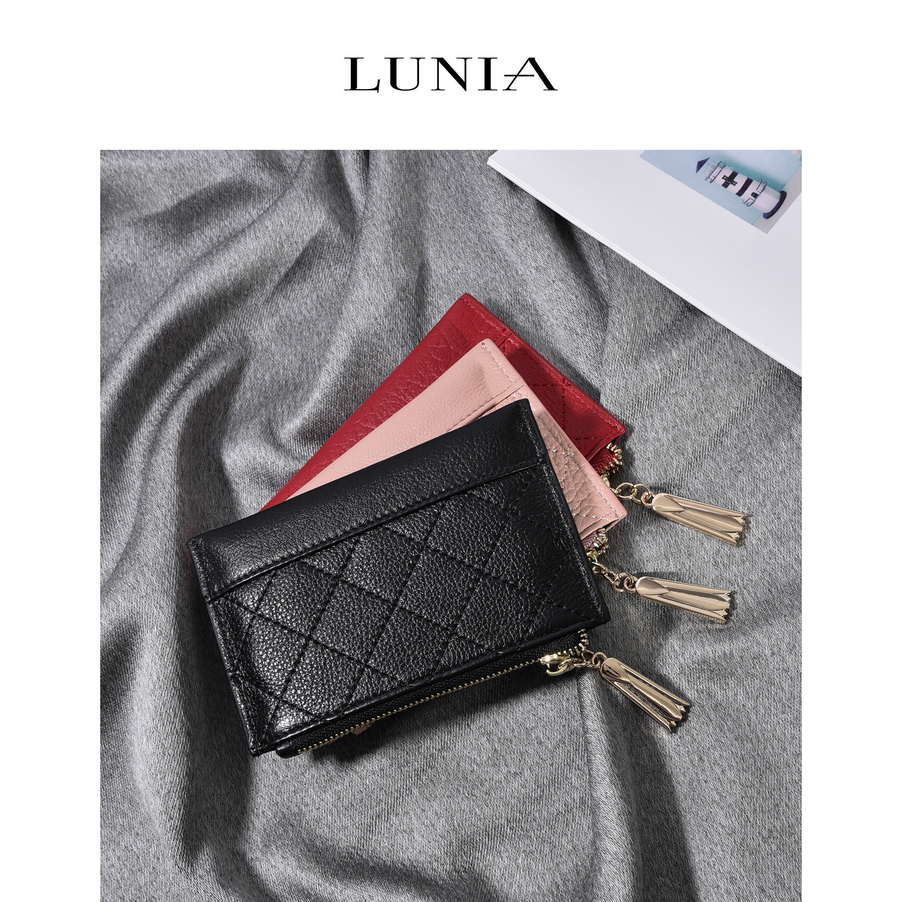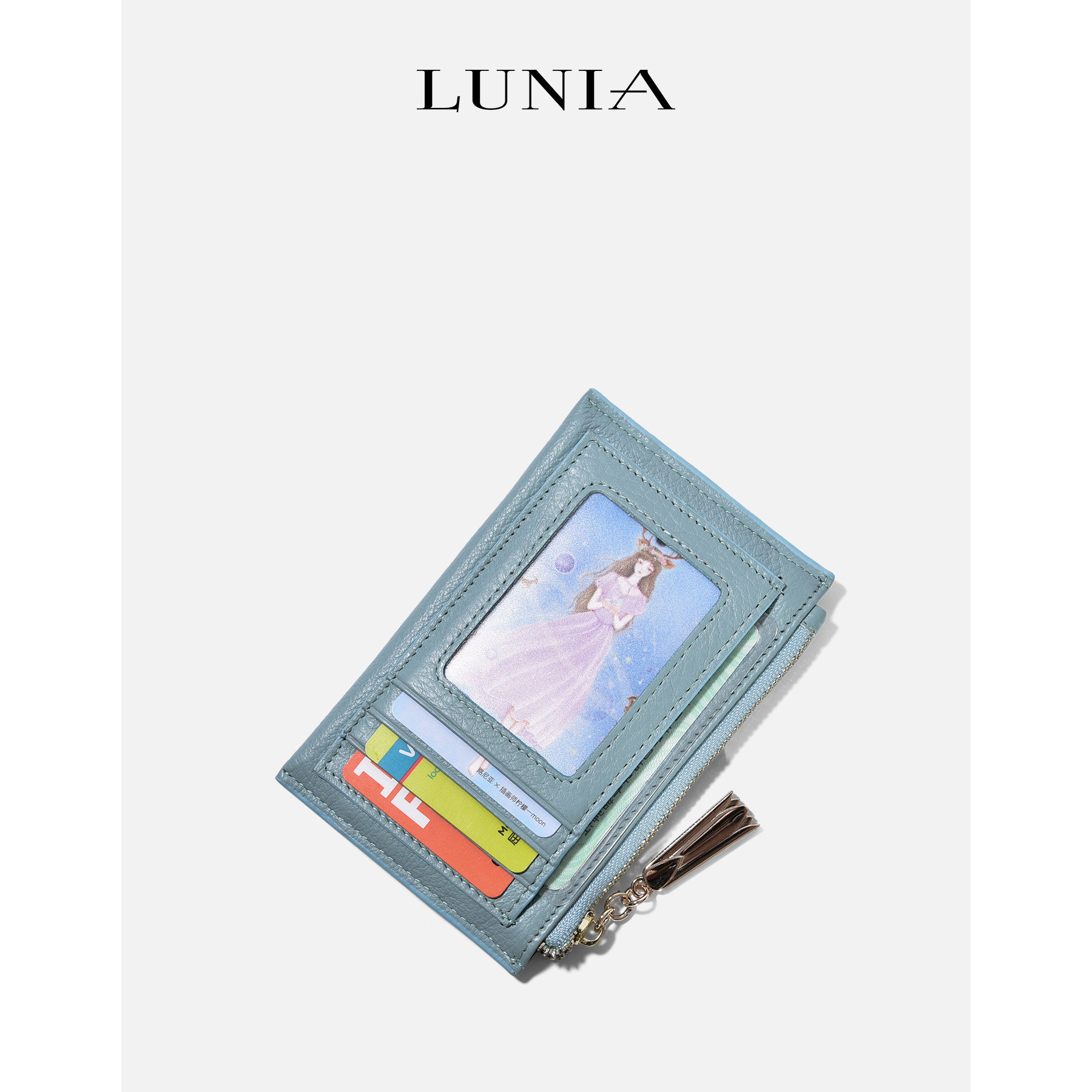Lunia Japanese and Korean simple leather coin purse women's short ID card holder first layer leather zipper wallet coin bag
