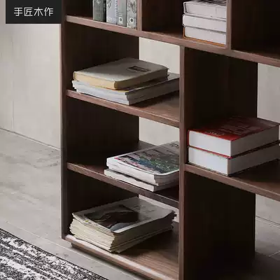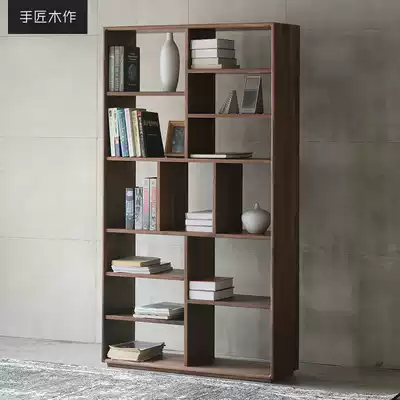 Original design black walnut solid wood bookshelf shelf Nordic simple log bookcase multi-layer combination display cabinet
