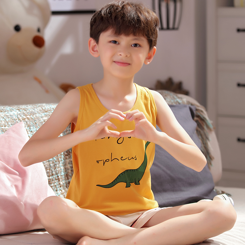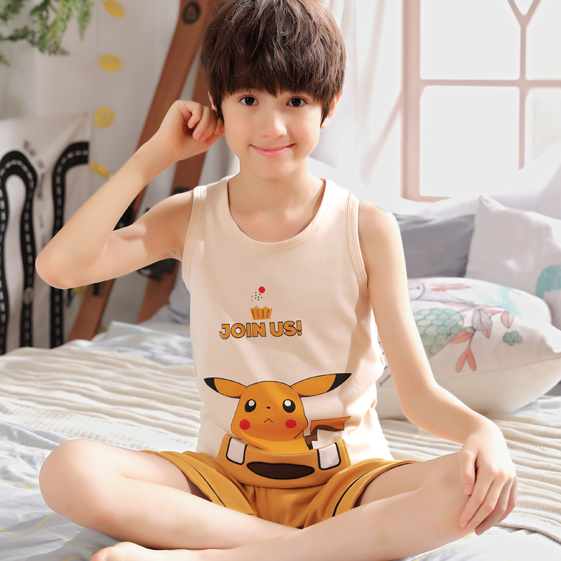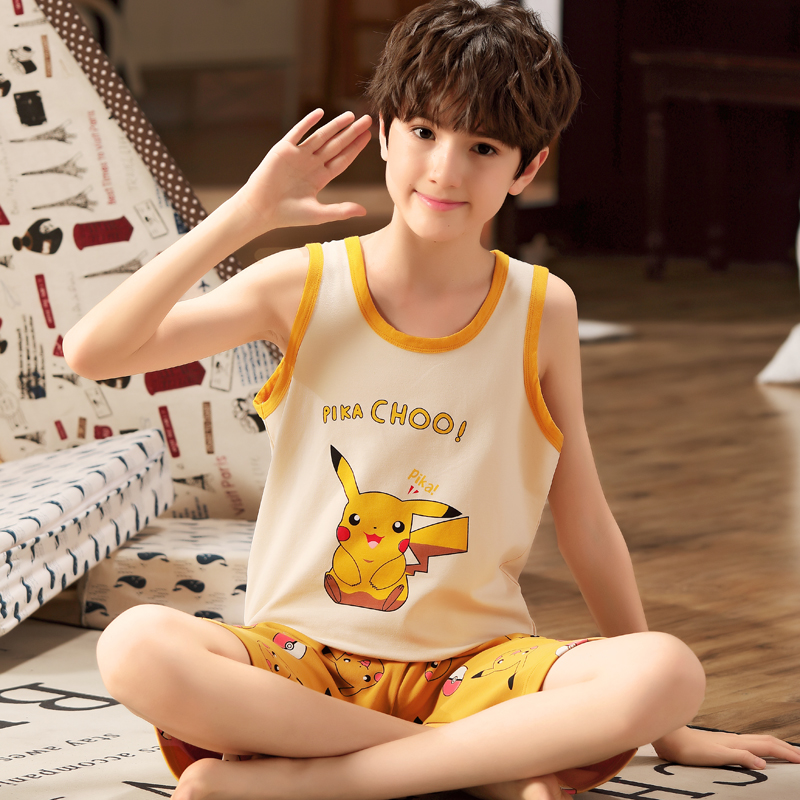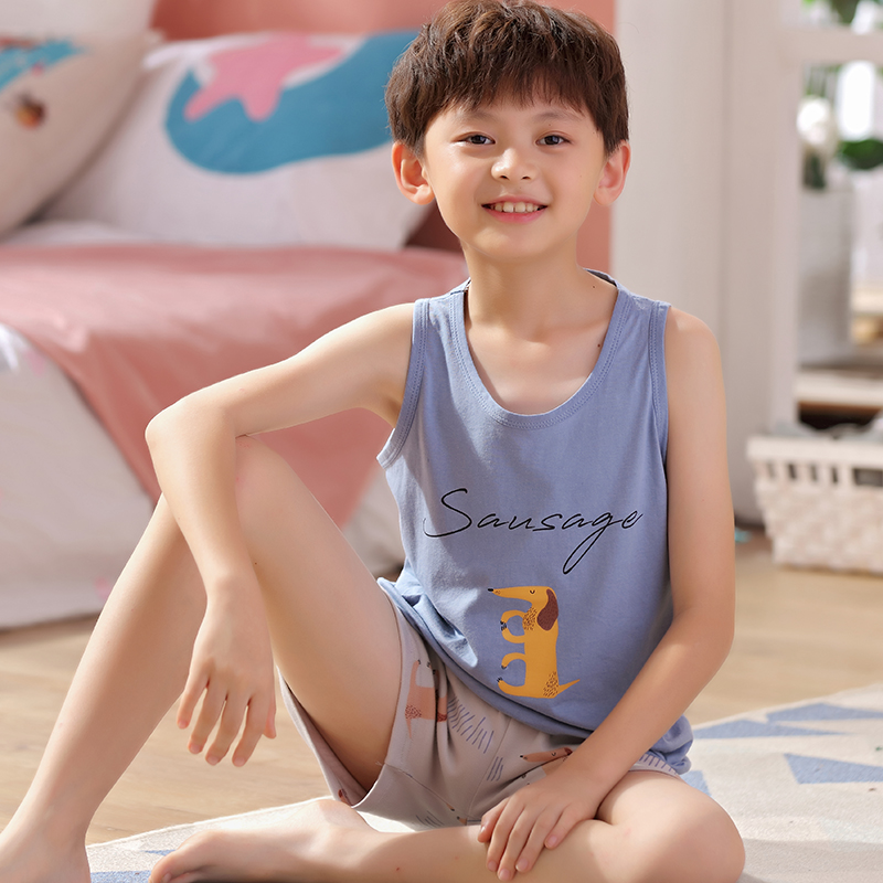 Boys pajamas summer thin cotton sleeveless big boy home clothes vest suit children cartoon pajamas teenagers
