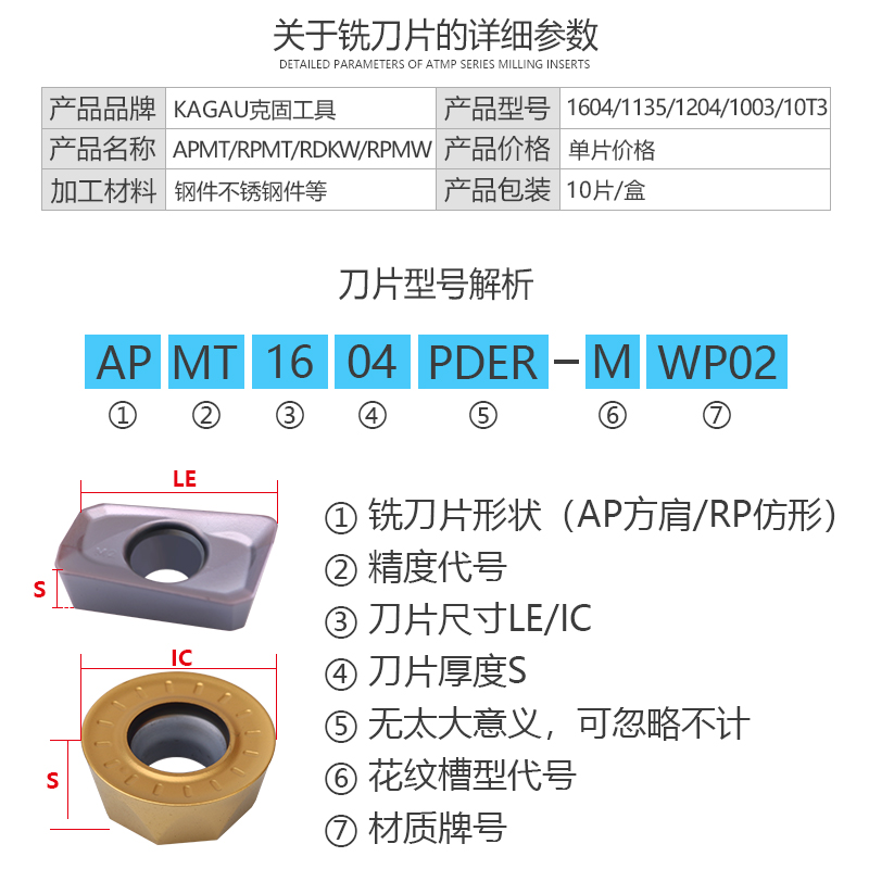 Kern numerical control milling cutter APMT1604 APMT1604 1135PDER R0 8 R0 R5 R5 R6 milling machine hard alloy round knife grain