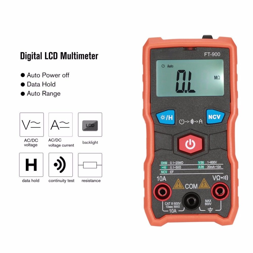 NCV button type simple digital multimeter automatic range backlight fully automatic fool type large capacitor