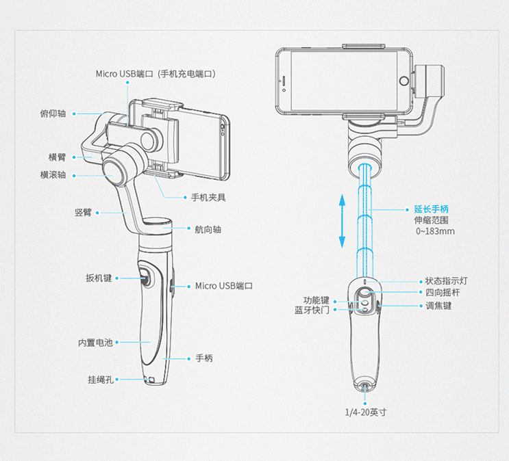 Feiyu Vimble2 mobile phone stabilizer handheld gimbal anti-shake selfie stick three-axis gopro motion camera live broadcast