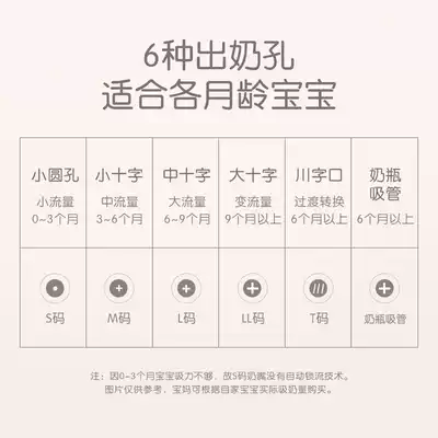 LL(Large cross variable flow 9 months-3 years old) L (medium cross 6-9 months) L LL (A total of 2 pacifiers 6-9 months or more) M (Small cross