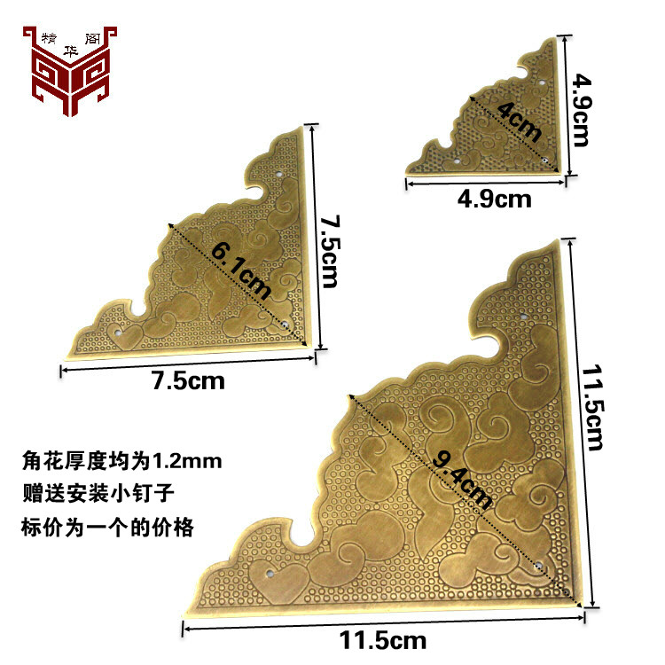 New Chinese cabinet door corner flower Pure copper corner flower paste Chinese cabinet copper corner wrap corner jewelry box decorative copper corner flower