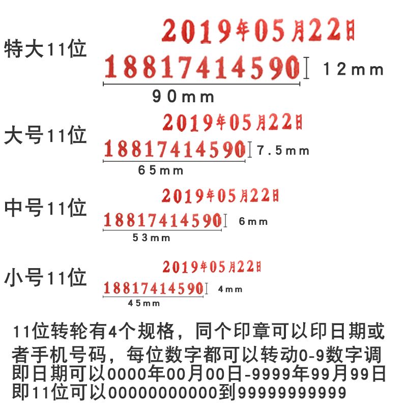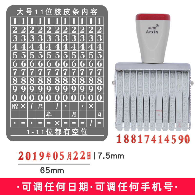 Asiainfo 11-digit runner seal digital stamp Telephone mobile phone number stamp Year and date Adjustable date Stamp production date 0-9 Large, medium and small wheel digital seal Code number Batch number