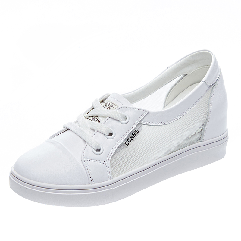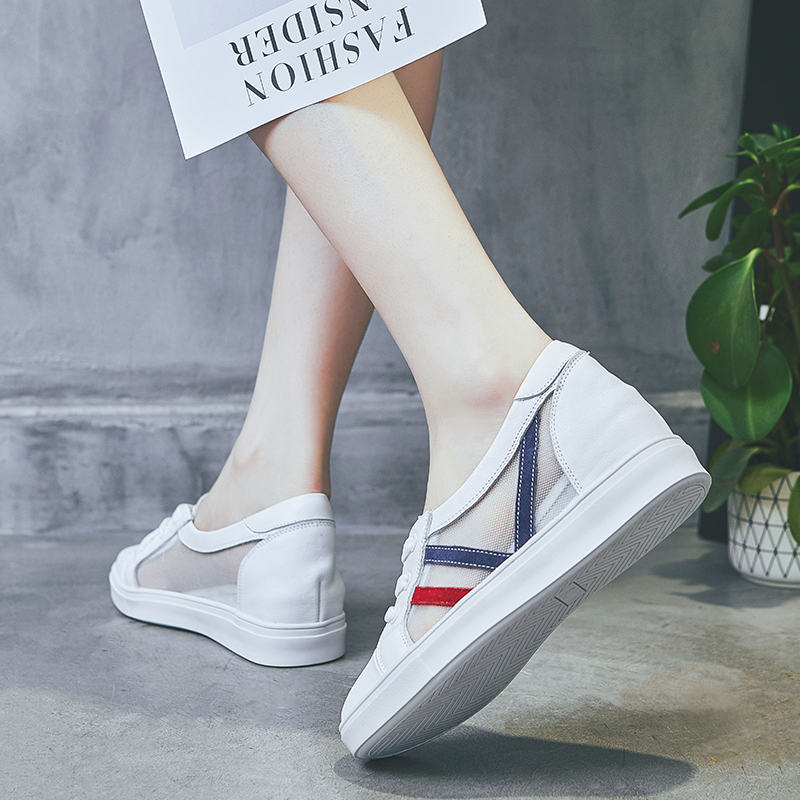 Summer shallow mouth white shoes women's 2022 new all-match inner heightening board shoes mesh thin breathable white shoes with skirt