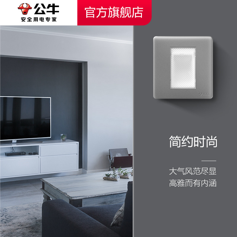 Bull Switch Socket Universal 86 electric light ground foot lights up night light Children light Lighting yellow light G28 ash-Taobao