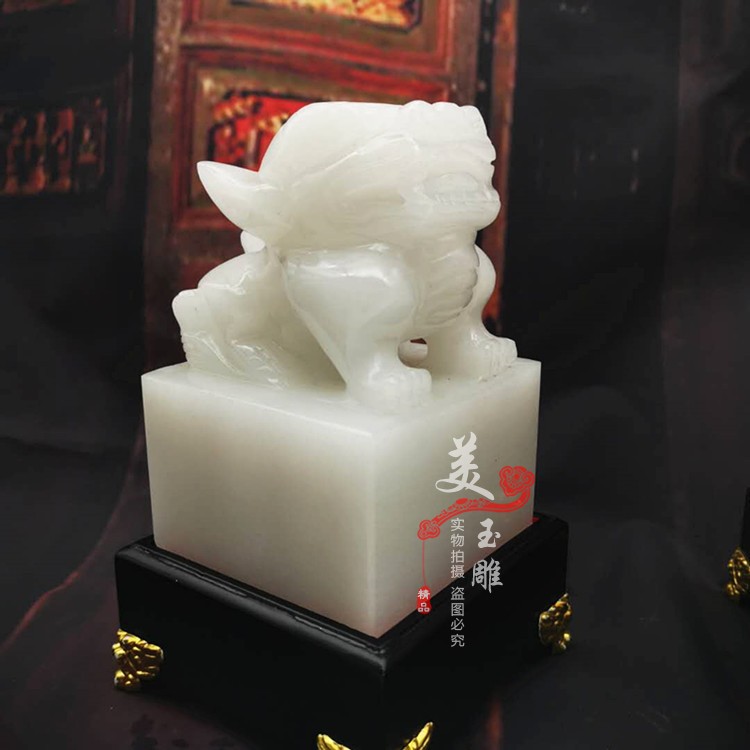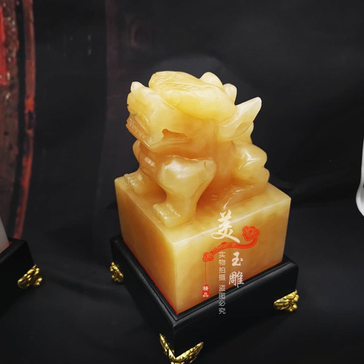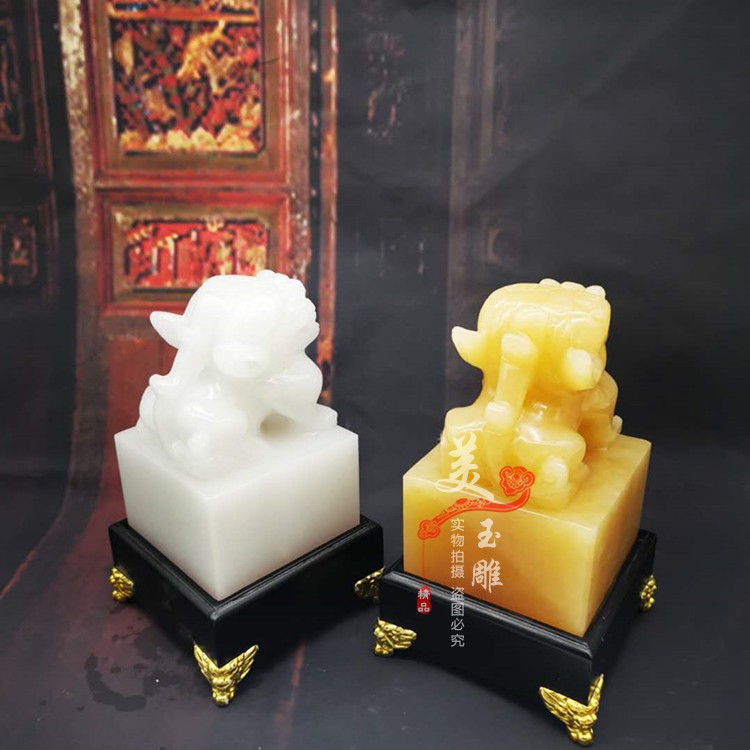 Natural Jade Tianlu Pixiu Seal Ornament Topaz Pixiu Yuxi Office Home Ornament Seal Package Lettering