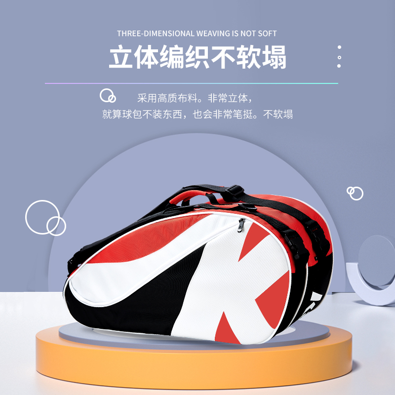 (Wet and dry separation ~ 6 with independent shoe compartment + insulation layer) 8682D black and blue (dry and wet separation ~ 6 with independent shoe compartment + insulation layer) 8689D white blue (professional 6 large capacity with independent shoe compartment + insulation layer) 8683 blue (professional 6 large capacity with independent shoe compartment + insulation layer) 8685 red and black (professional 6 large capacity with independent shoe compartment + insulation layer) 8685 blue red (professional 6 large capacity with independent shoe compartment + insulation layer) 8688 camouflage (sports fitness Badminton multi-functional square bag 6 pieces with independent shoe compartment + insulation layer) 8687 black (professional 9 packs large capacity with independent shoe compartment + insulation layer) 8969 red and black (professional 9 packs with large capacity with independent shoe compartment + insulation layer) 8969 blue red (6 packs with independent shoe compartment + insulation layer) gift dry and wet separation bag KB-8691 blue and white