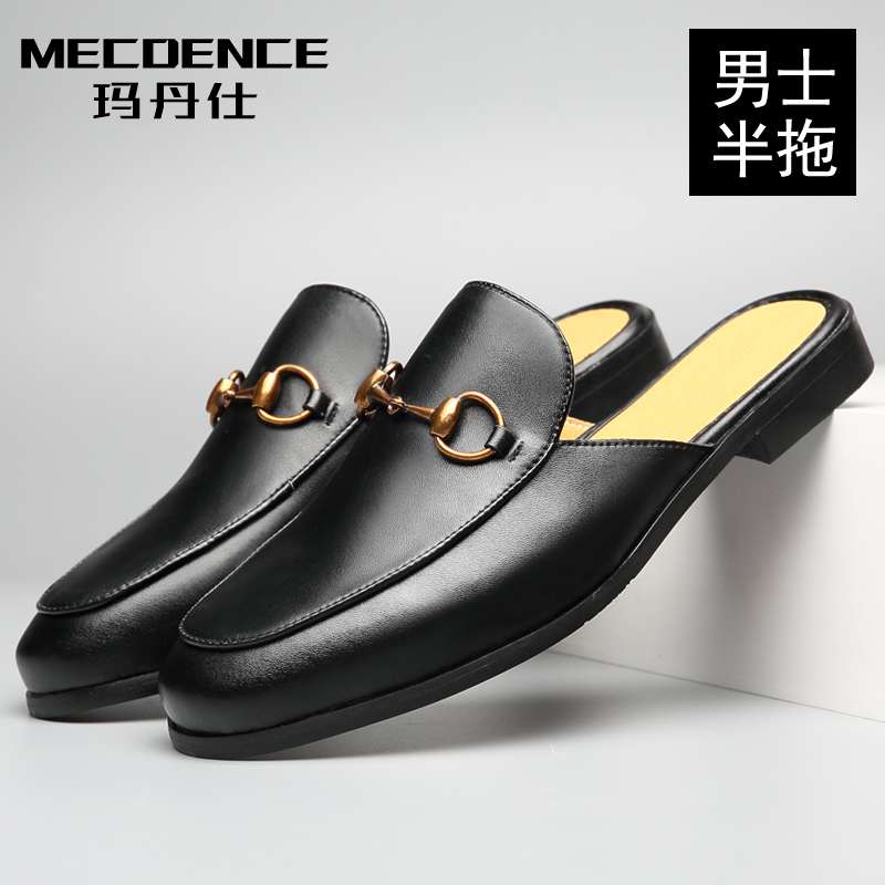 Summer Semi-slippers Baotou Men's Han version Breathable Boomer Shoes Dressing Room Shoes Legue-bean Sloppy Shoes No Heel Sandals Men
