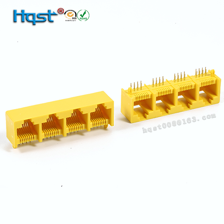 RJ45 55F type 1*4 non-screen no light network connector network port crystal head socket for optical cat router yellow