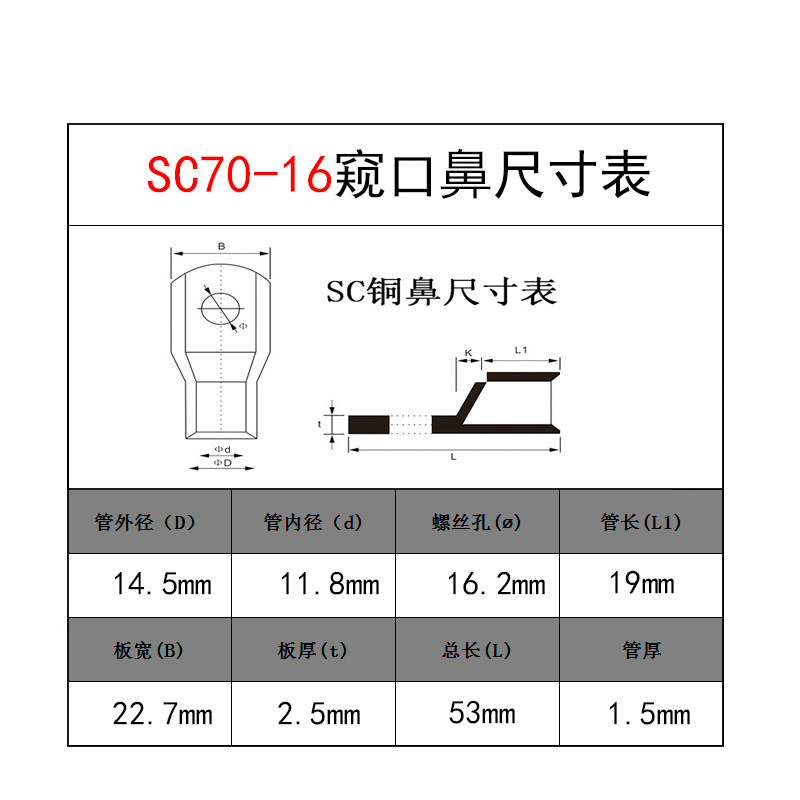 SC70-16 peep copper wiring terminal cable copper connector SC press line nose 70 squared SC wiring terminal copper wire ear
