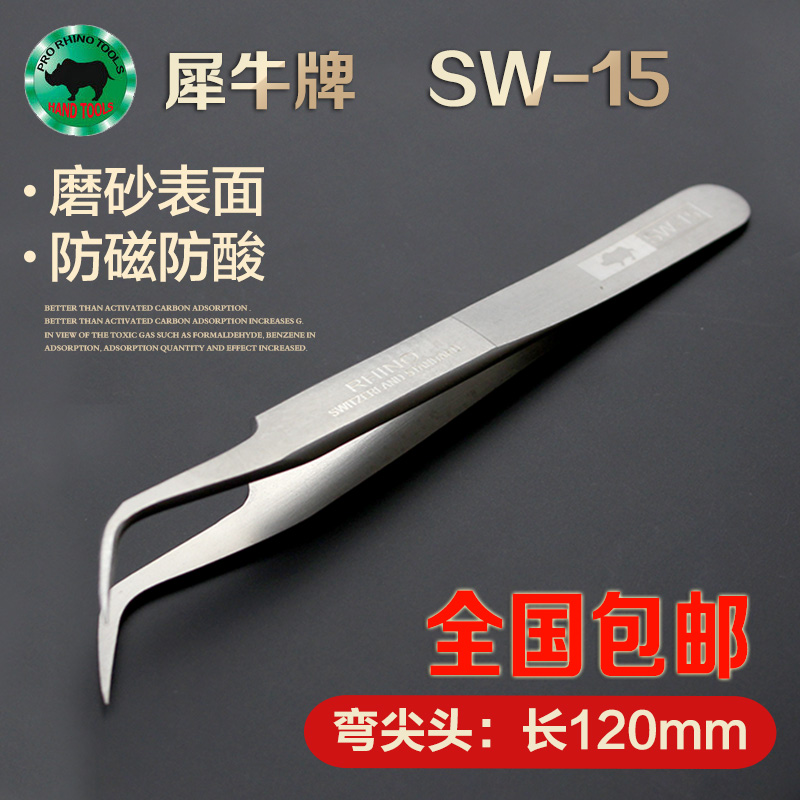 Japan imports rhinoceros SW-11 tweezers frosted anti-magnetic acid-proof stainless steel tweezers ultra-hard tip clamps