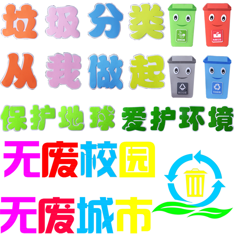 Kindergarten Elementary School Garbage Sorting Ring Protection Earth Black Board Newspaper Decoration Material Class Culture Classroom Wall Sticker Painting-Taobao