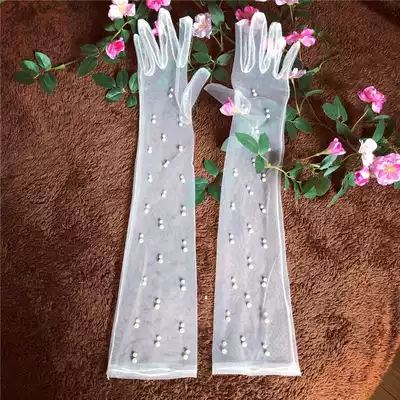 Bridal gloves white wedding pearl mesh gloves White yarn lengthened travel shooting shadow cover arm summer thin section