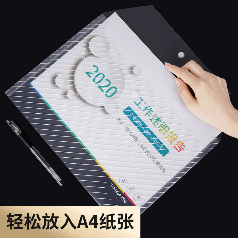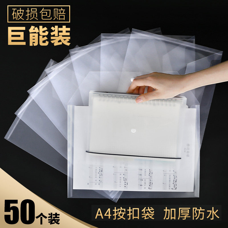 100 Sima A4 thick transparent file bag snap plastic transparent data file bag large capacity storage student test paper collection book ticket bag mesh zipper file bag