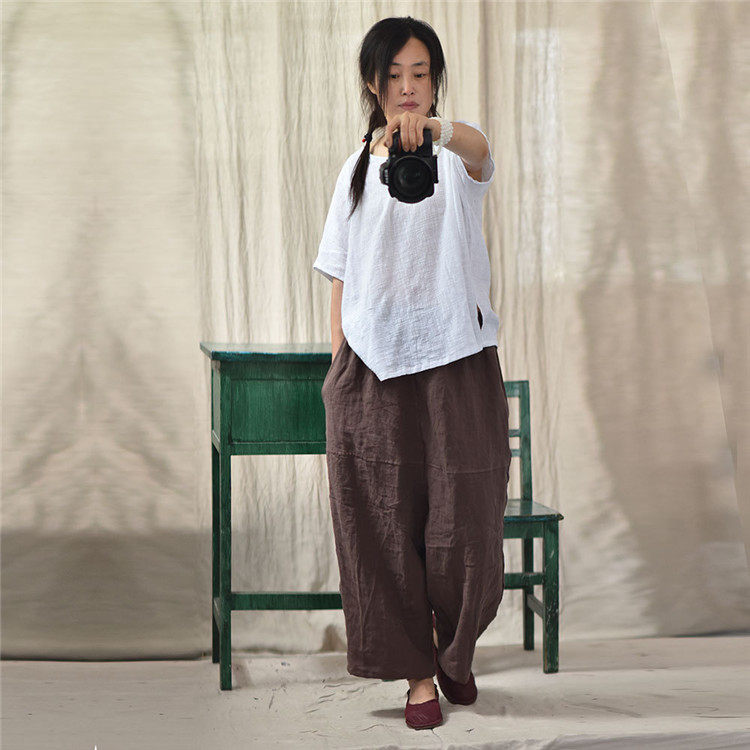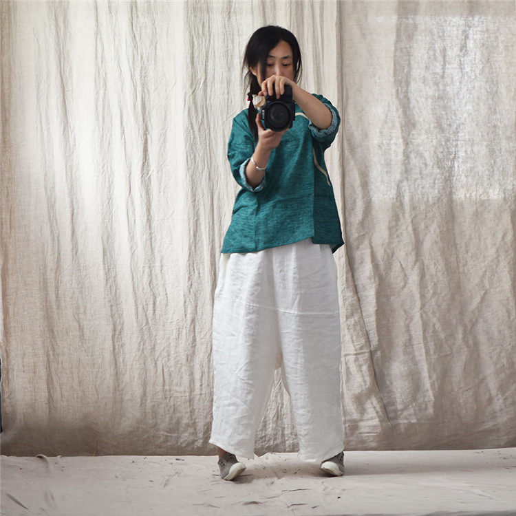 Summer ramie wide-leg pants look thin retro casual straight thin section cotton and linen nine-point ethnic pants loose baggy pants