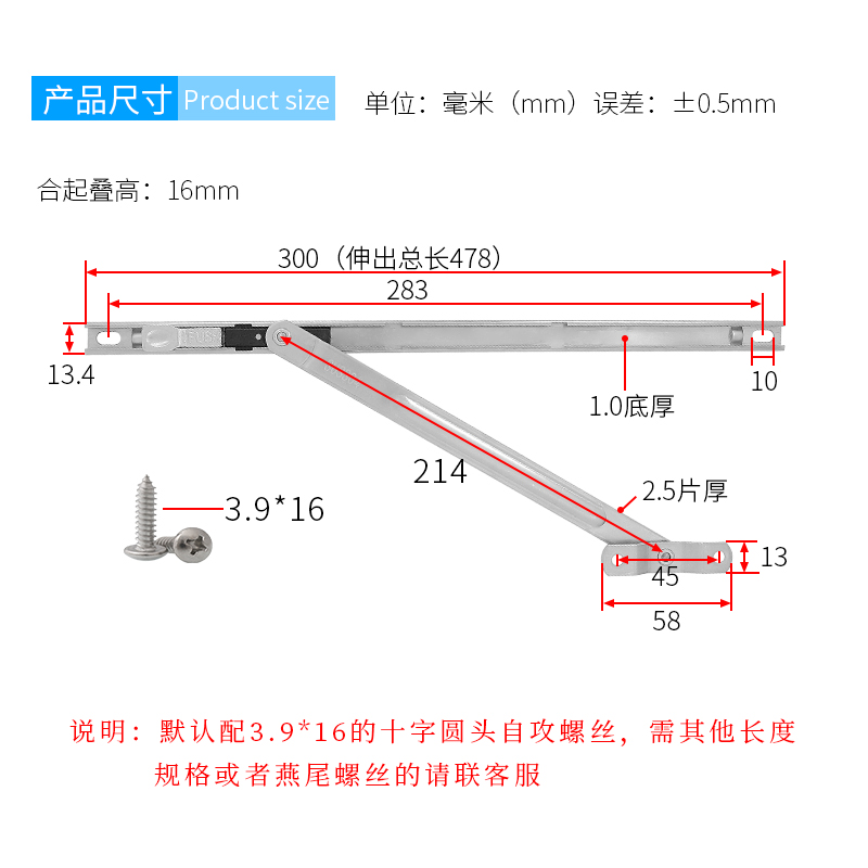 Three-point positioning wind brace 304 stainless steel broken bridge aluminum alloy window windproof telescopic lever limitator push-pull window hinge