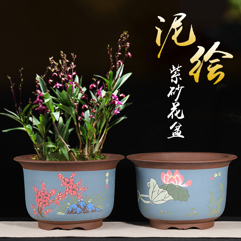 Yixing Purple Sand Pot Ceramic Large Clearing Green Rose Pot Balcony Butterfly Orchid Pot Special Price