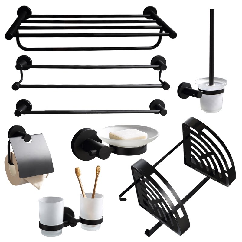 Real Valley Bathroom Black towel rack Stainless Steel Makeup Room Bathroom set bath towels Corner Blue Hardware Pendant Suit