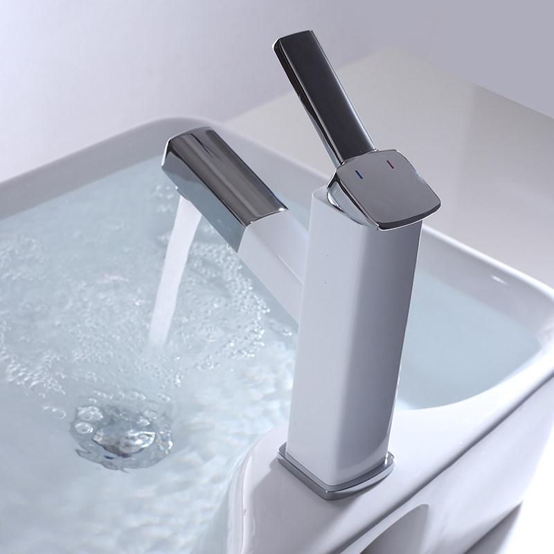 Gobyges square drawing basin hot and cold water faucet dressing room washbasin elongated countertop basin faucet