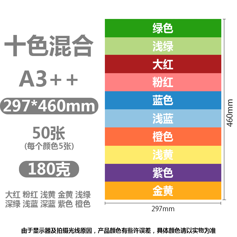 Long print A3 Colour Cardboard Seal Leather 180g Hard cardboard 50 297 297 * 460 Kindergarten Colour photocopy Paper black card white card colour cardboard mixed colour red pink blue green yellow 1