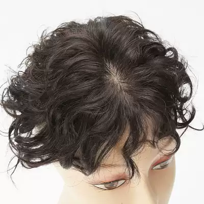Head hair patch Female cover white hair Patch Head wig patch Real hair Seamless curly natural hair top fluffy curly short hair