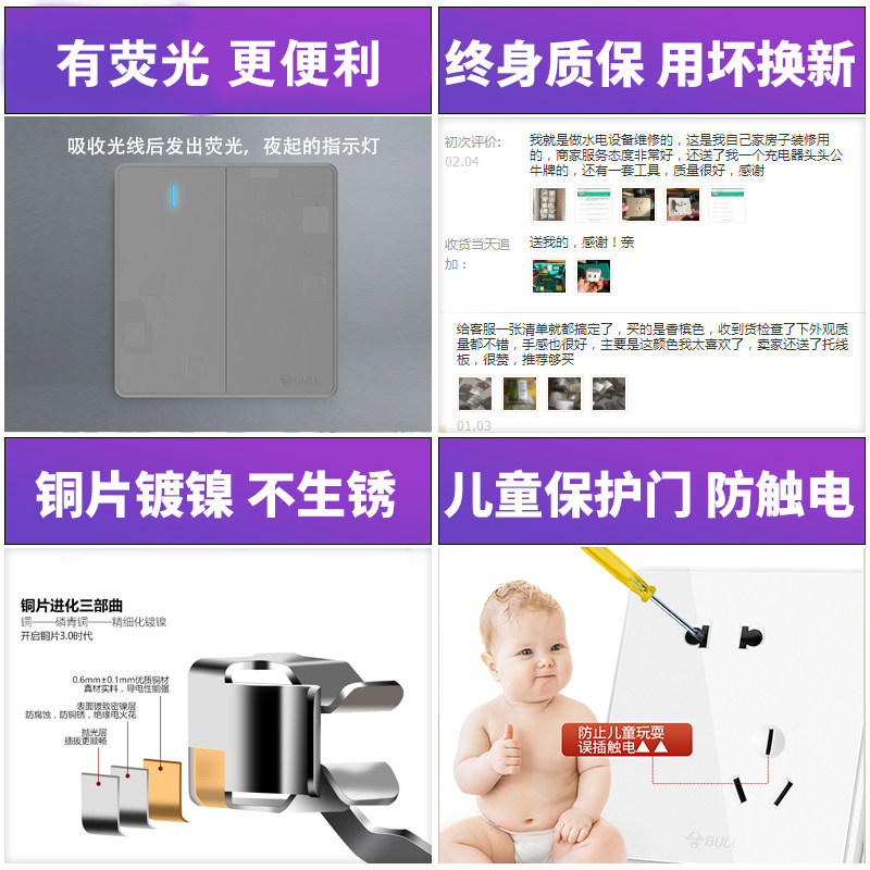 Bull 16A Socket Panel High Power 86 Type Wall Power Triple Hole Socket Switch Water Heater Air-conditioning G18 White