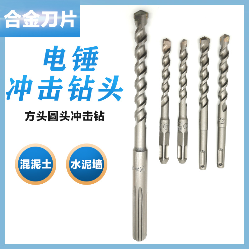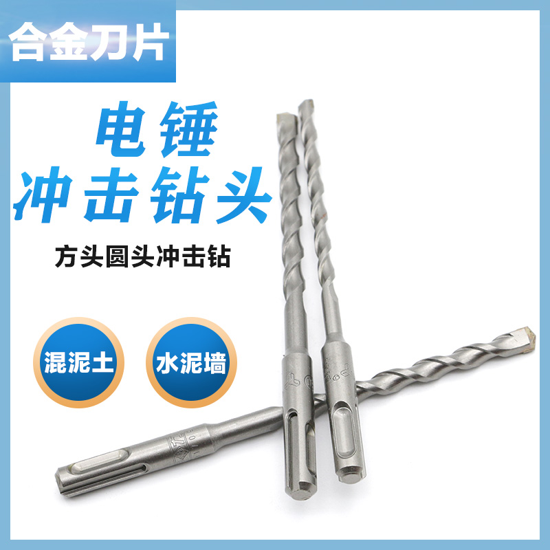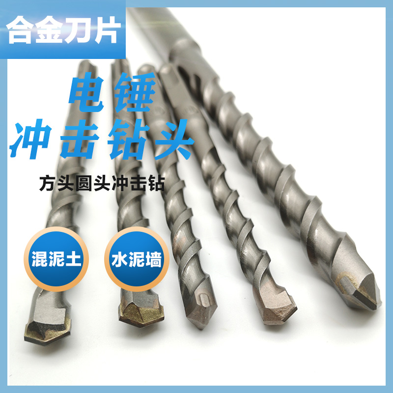 Electric hammer drill impact drill bit 16 18 20 22 25*200mm square head round head four pit concrete cement wall drill bit - Taobao