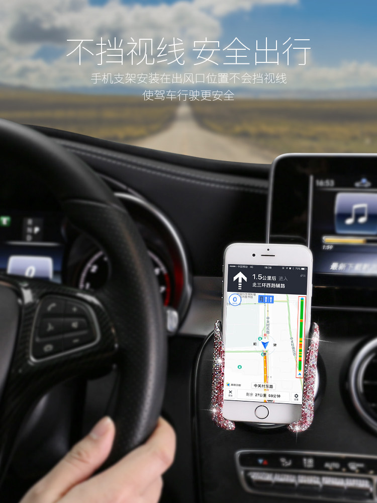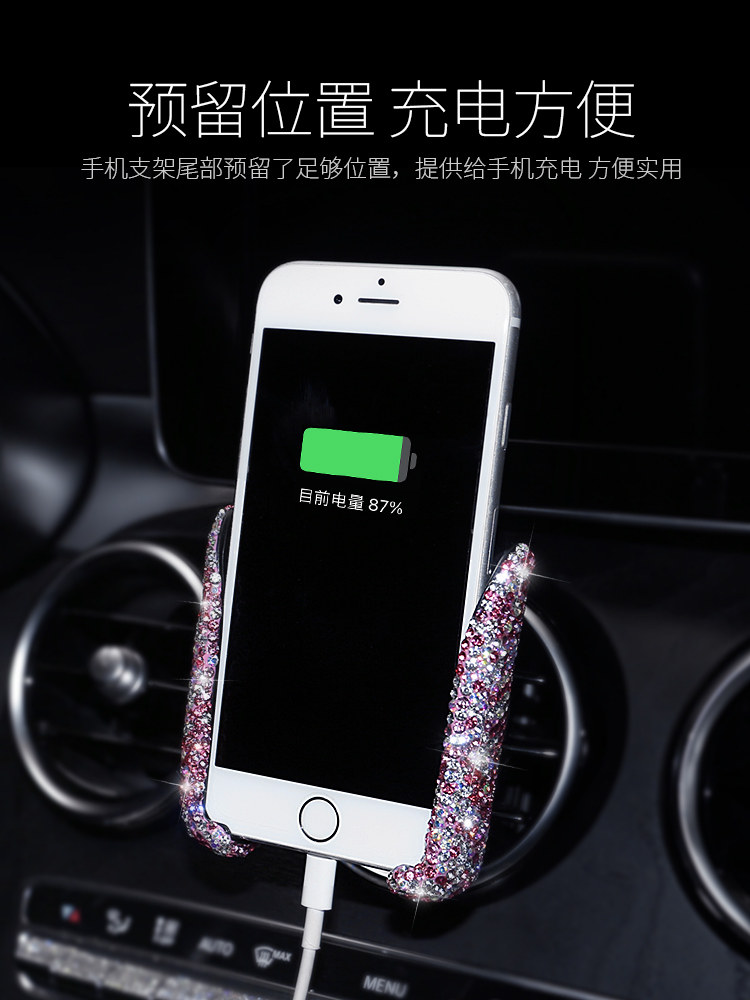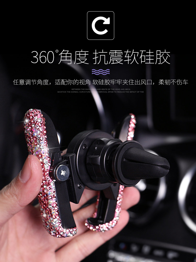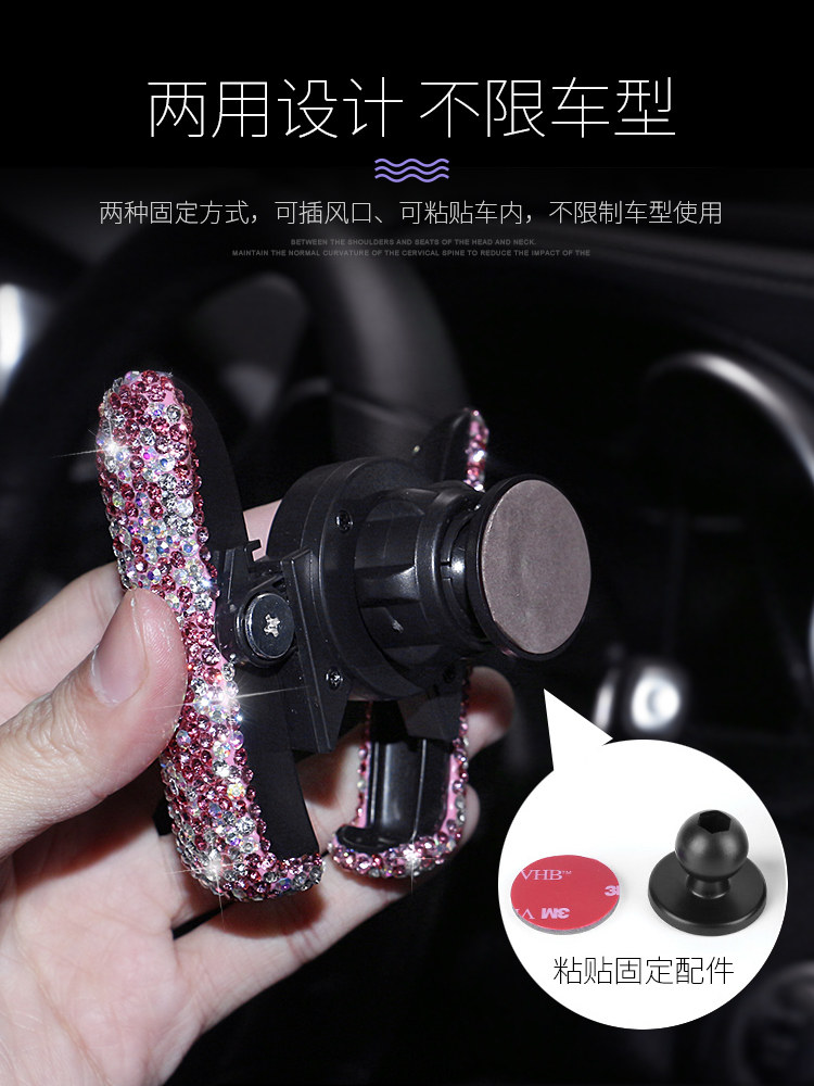 Car mobile phone bracket creative ladies diamond-encrusted navigation air outlet clip bracket paste gravity personalized interior decoration