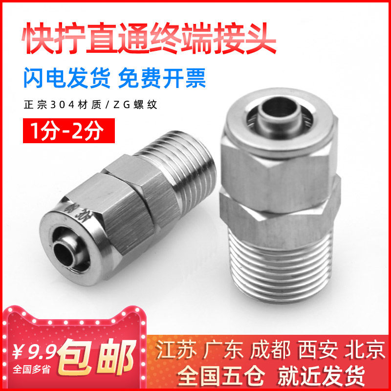 Giant 304 stainless steel quick-screw joint straight-through quick-screw joint hose tetrafluoro pipe joint PU pipe joint ZG