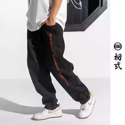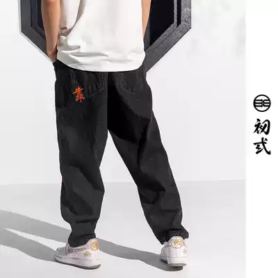 Early 2021 New Chinese style relies on their own personality embroidery casual pants Tide brand loose Street thin trousers men