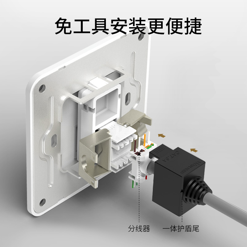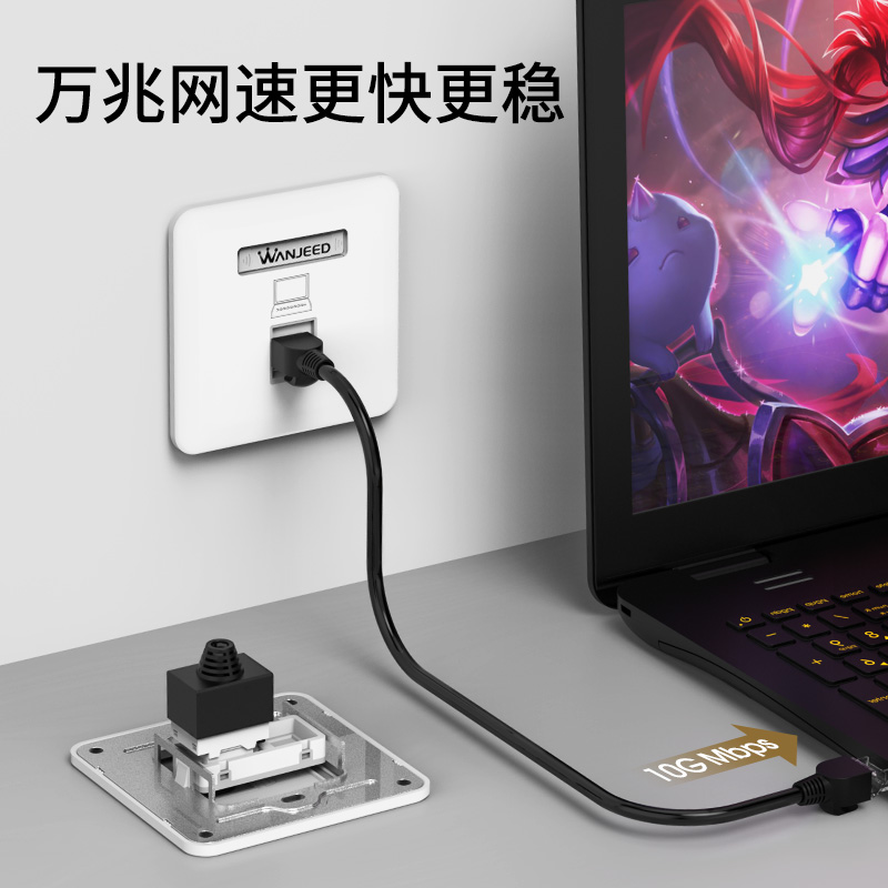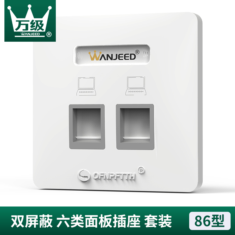 10,000-level WANJEED Super 5 Cat6 network cable socket Computer jack network one or two bit single and dual port 86 type panel shielding super six class 10 Gigabit broadband play-free module