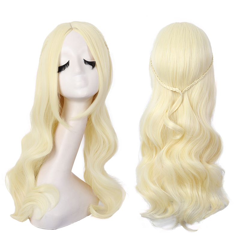 cos wig female long curly hair big wave Lolita net red female middle split bangs anime light gold grandma gray long hair