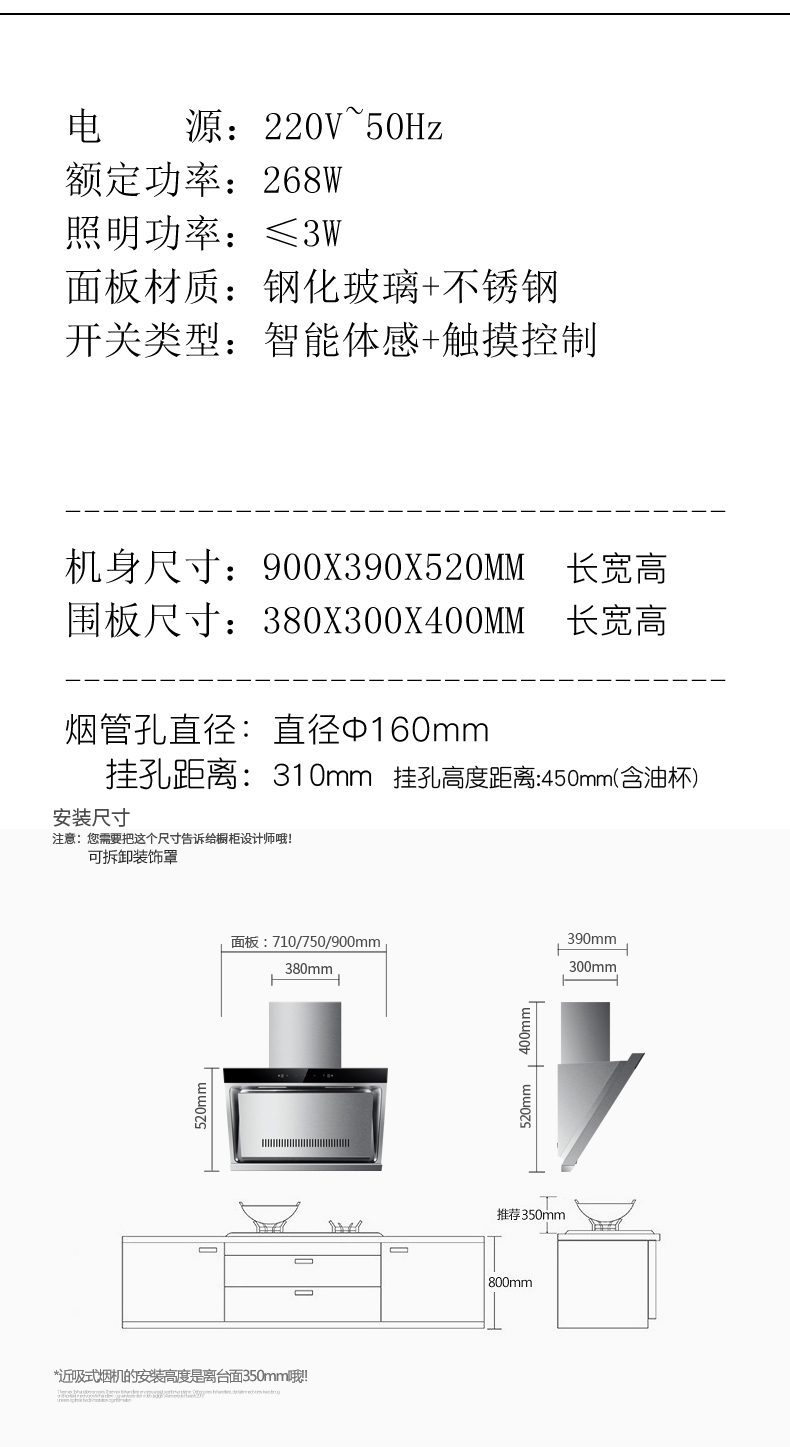 Side suction type stainless steel touch automatic cleaning ventilator home wall-mounted deplatoon small extractor hood