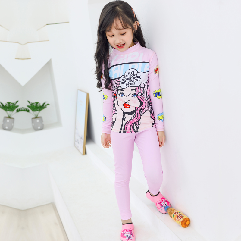 Korean version 2019 new children's swimsuit Girls 'middle and large children's long-sleeved trousers wetsuit girls' tops and pants are sold alone